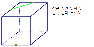 검은색 점 2개와 점 A는 각각 같은 평면에 있는 점이므로 각각 이어준다.(A)